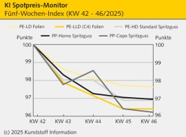 Munter weiter runter ging es für die Notierungen in der vergangenen Periode zwischen der 42. und 46. Kalenderwoche. Das Jahr 2025 nähert sich zügig seinem Ende – und das bedeutete: Bestandsabbau. Europäische Erzeuger leerten ihre Lager und warfen, angestachelt durch die starke Konkurrenz der Importwaren, ihre Granulate zu Sonderkonditionen auf den Markt. Moderat gestalteten sich allein die Anpassungen bei... (18.11.2025)