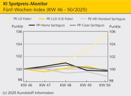 Standard-Thermoplaste Trend Dezember 2025: Rollover bei den Polyolefinen und PVC, leichte Aufschläge bei den Styrolkunststoffen