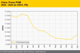 China Technische Thermoplaste Dezember 2025: Preisentwicklung uneinheitlich trotz überwiegend schwacher Nachfrage / POM legt bei knappem Angebot deutlich zu / Abwärtstendenz der Notierungen im Januar erwartet